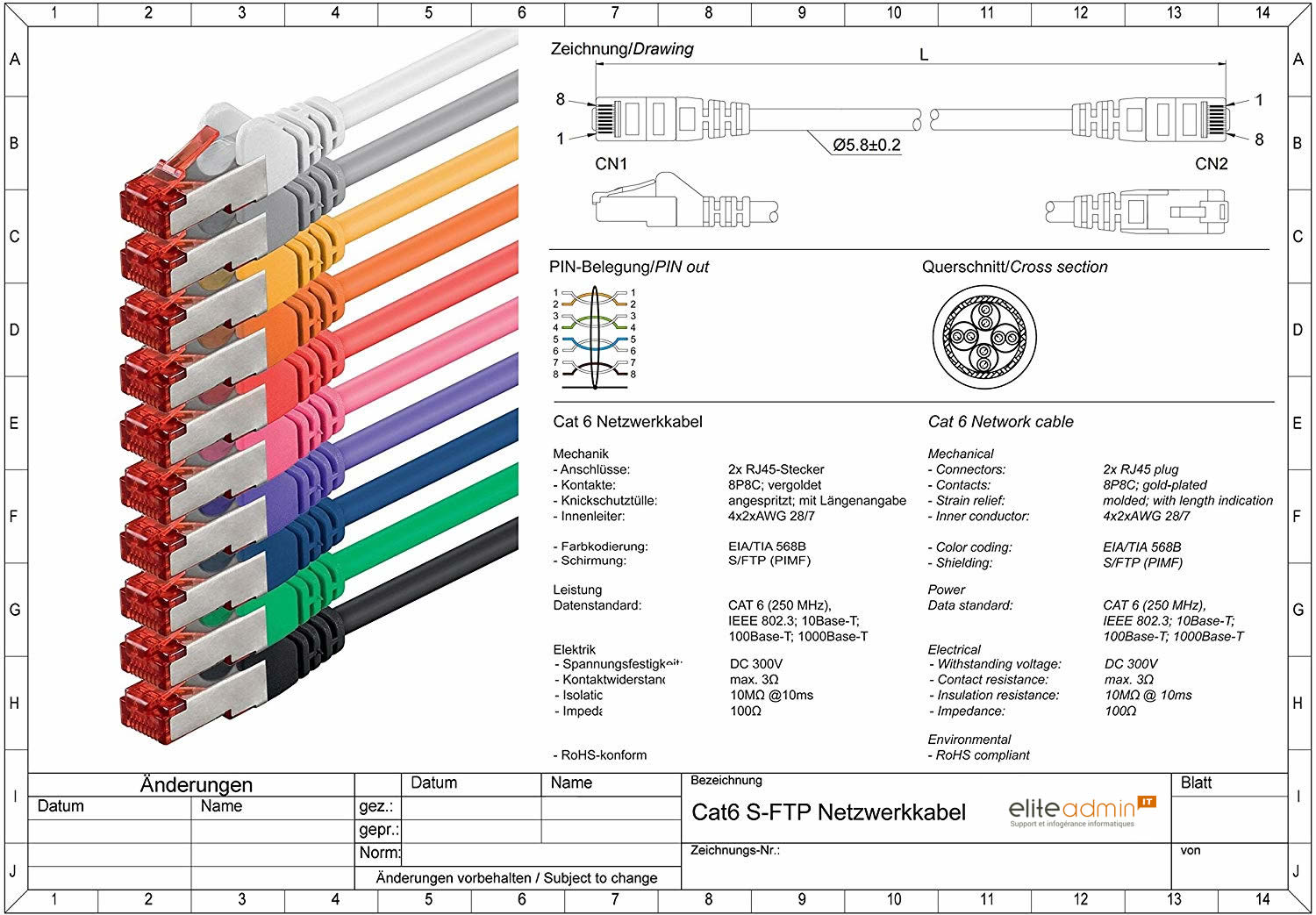 Le câble Ethernet Cat 6 S/FTP va vous permettre de façonner votre réseau simplement. Il peut prendre en charge jusqu’à 1 Gb/s dans votre environnement de travail. Le câble RJ45 catégorie 6 S/FTP est la solution réseau qu’il vous faut.